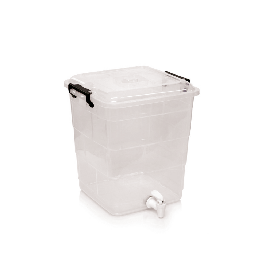 Contenedor práctico y útil con tapa y canilla capacidad 10 LT, elaborado en plástico de alta calidad, resistencia y durabilidad. Solución de almacenamiento de alta capacidad, ideal para contener y transportar líquidos de forma segura.