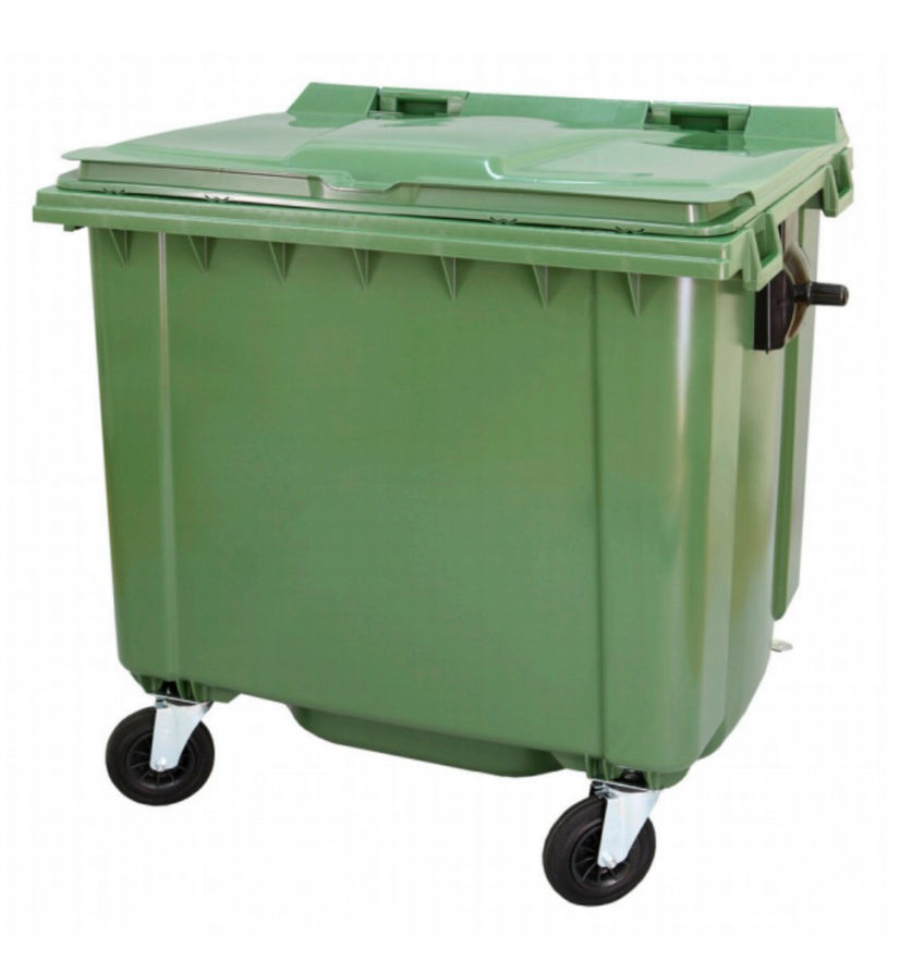 El Contenedor de Basura con cuatro Ruedas 1100 Litros. cuenta con unos ejes en las ruedas fabricado de acero macizo, galvanizado, cuerpo hecho en HDPE, fabricado en España.